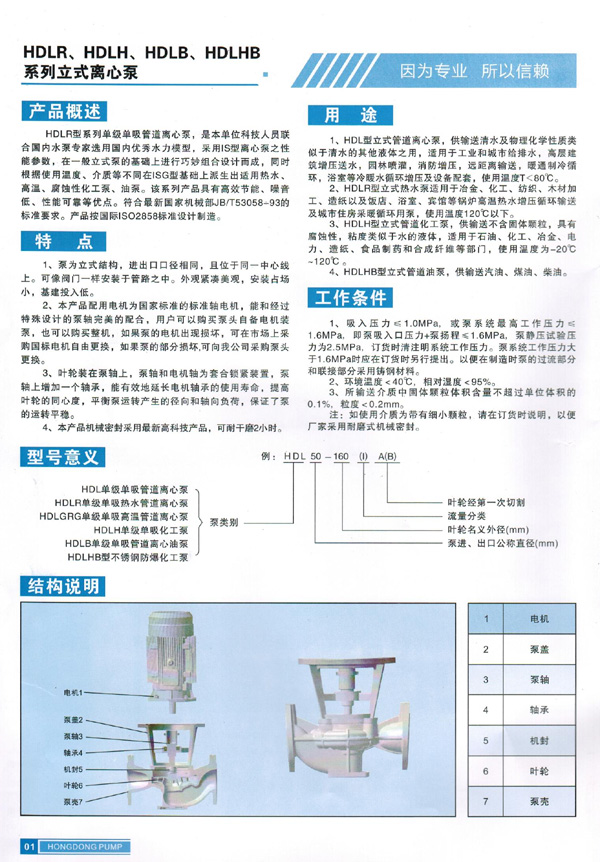 HDLR型系列單級單吸管道離心泵,是本單位科技人員聯(lián)合國內(nèi)水泵專家選用優(yōu)秀水力模型,采用IS型離心泵之性能參數(shù),在一般立式泵的基礎(chǔ)上進(jìn)行巧妙組合設(shè)計(jì)而成,同時(shí)根據(jù)使用溫度、介質(zhì)等不同在ISG型基礎(chǔ)上派生出熱水、高溫、腐蝕性化工泵、油泵。該系列產(chǎn)品具有高效節(jié)能、噪音低、性能可靠等優(yōu)點(diǎn)。