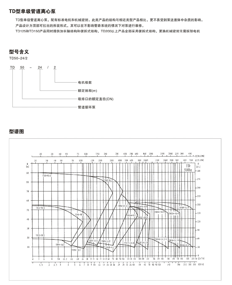 其中TD32-TD150口徑產(chǎn)品為加長軸結(jié)構(gòu),TD200-TD300口徑產(chǎn)品為便拆式結(jié)構(gòu),便拆式結(jié)構(gòu)采用集裝式機(jī)械密封,更換機(jī)械密封時(shí)無需拆卸電機(jī)。